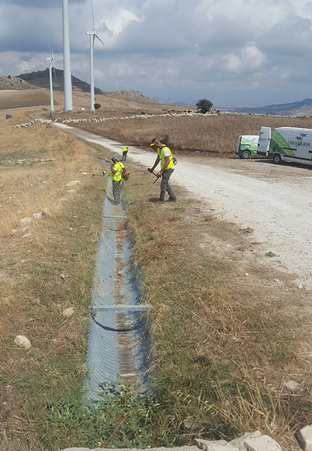 Interventi organizzati per mantenere ordine, controllo della vegetazione e accessibilità nelle aree funzionali dell'impianto.
