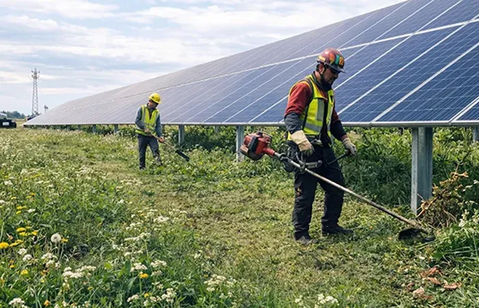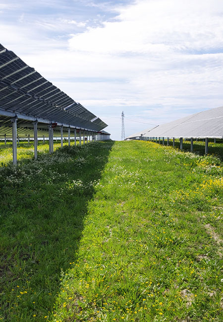 Gestione del verde nelle aree sotto i pannelli, tra le file e nelle superfici tecniche che richiedono continuità di manutenzione.